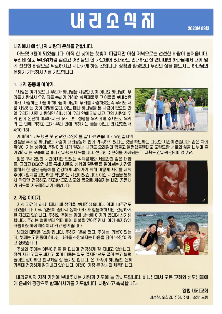 Á¦¸ñ 2023³â 9¿ù ³»¸®±³È¸ ¼Ò½ÄÀÔ´Ï´Ù